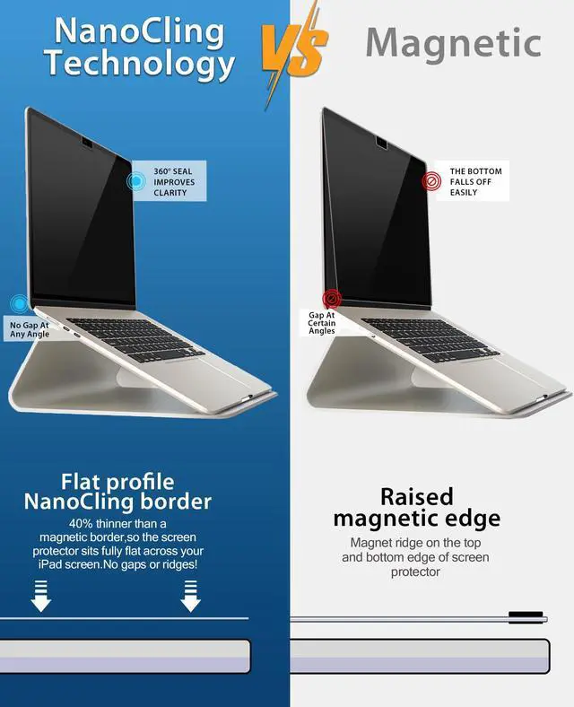 NanoCling Technology for Secure Attachment: Unlike traditional magnetic attachments, our NanoCling Privacy Screen utilizes cutting-edge nano-adhesive technology. This ensures a secure and precise fit to your MacBook Pro 16 Inch screen without any interference with its sleek design. Experience seamless integration and worry-free privacy protection with Na