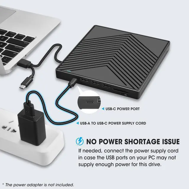 [(Support Reading & Burning & Ripping)] This versatile CD/DVD drive isn't just for reading music CDs and movie DVDs. It's also a fast DVD & CD burner and ripper, allowing you to copy music, videos, photos, and files to blank CDs or DVDs, convert and extract content from CDs/DVDs to your computer, install games, software, and systems, and store data on CDs/DVDs.