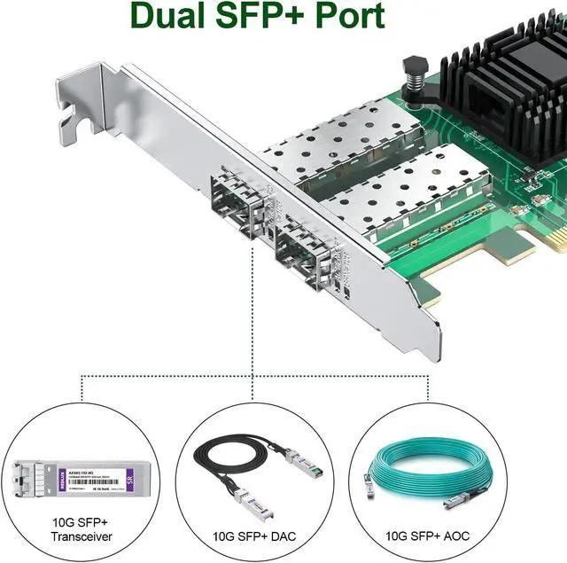1.[(Data Rate)] 10Gbps, Dual SFP+ Port, with SFP+ Transceivers/DAC/AOC for meeting the demands of data center environments.