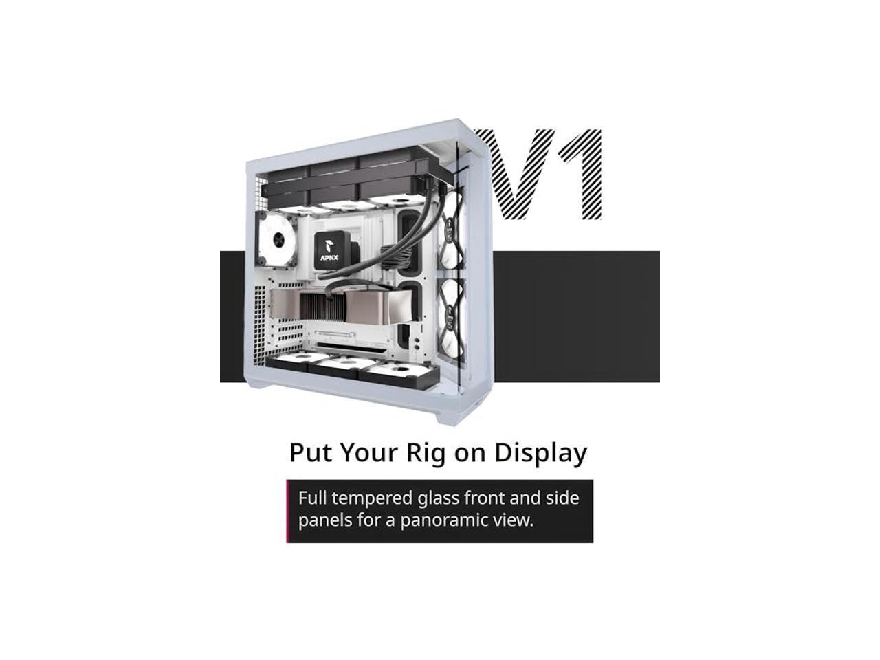 APNX V1 Dual-Chamber ATX Mid-Tower Airflow PC Case, Panoramic Glass Panels, 10 Fan Slots, 360mm Radiator Support, Front Angular Intake 16cmx2 Fan Bracket, GPU Mount, Cable Management, Type-C, Black