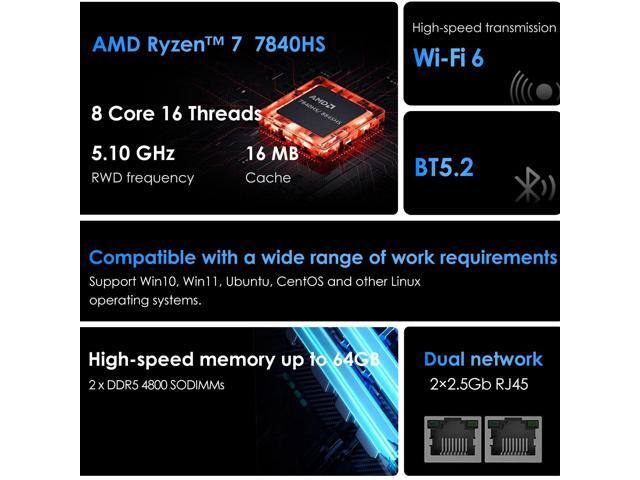 Advanced Graphics with AMD Radeon 780M: Enjoy stunning visuals and smooth graphics performance with the integrated AMD Radeon 780M. Whether for gaming, graphic design, or video editing, this mini PC delivers exceptional image quality and rendering capabilities.