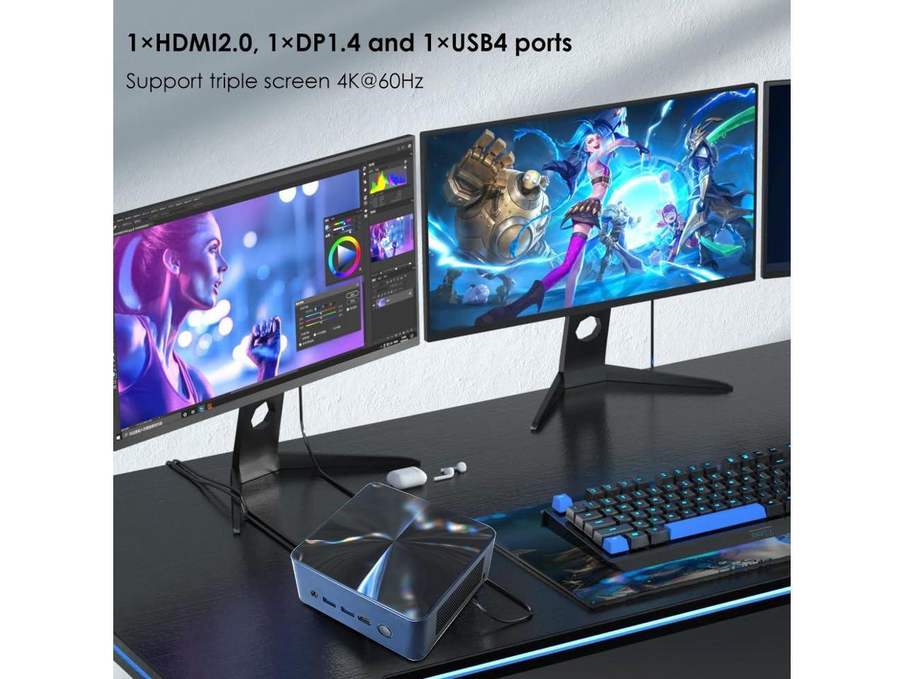 High-Speed Storage and Memory: Equipped with 16GB DDR5 RAM and a 512GB NVMe PCIe 4.0 SSD, this mini PC offers rapid data access and ample storage space. This combination ensures quick boot times, fast file transfers, and the ability to run multiple applications simultaneously without lag.