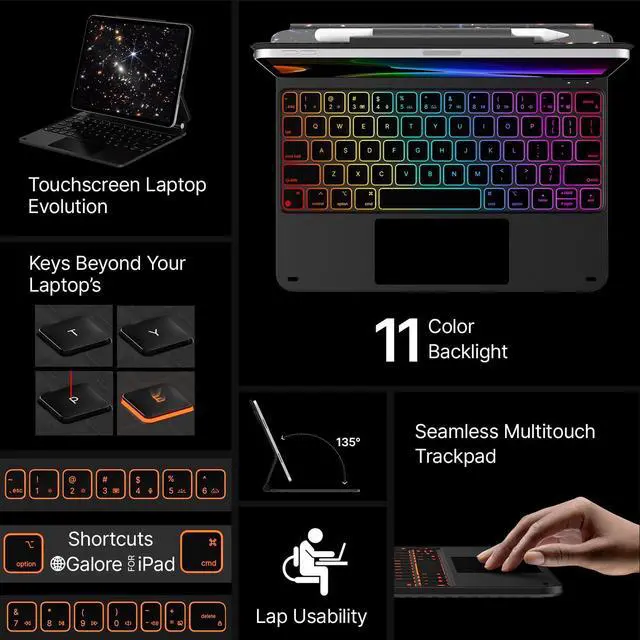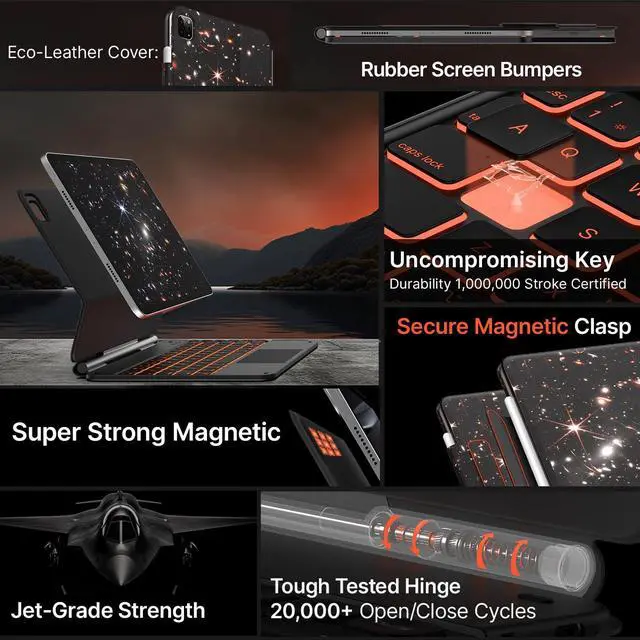 typecase Keyboard Case for iPad Air 11-inch (M3 2025 / M2 2024)& iPad Pro 11 inch (4th/3rd/2nd/1st Gen),Magic Keyboard for Air 5th/4th Gen,Multi-Touch Trackpad,11 Colors Backlight,James Webb Orange