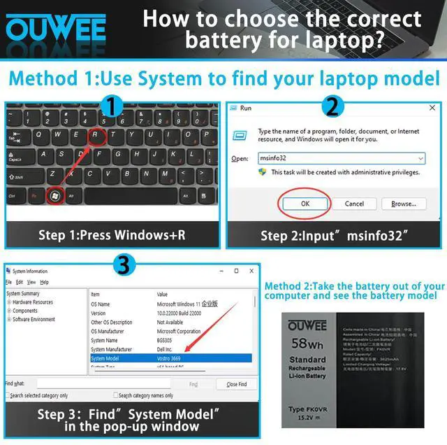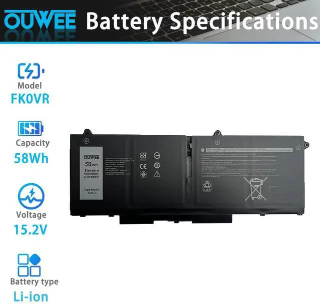 OUWEE FK0VR Laptop Battery Compatible with Dell Latitude 5330 7330 7430 7530 Latitude 5330 2-in-1 Latitude 7330 2-in-1 Latitude 7430 2-in-1 Series FKOVR 8H6WD 293F1 01VX5 404T8 51R71 8P81K