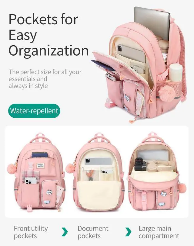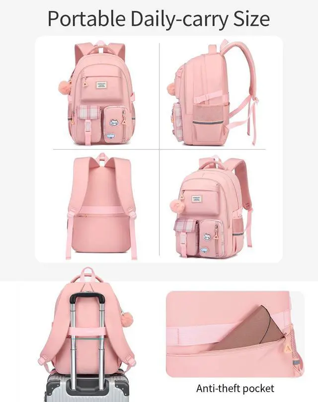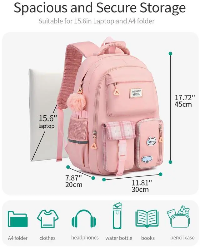 VANKANY Backpacks for Teen Girls - Laptop Backpacks 15.6 Inch Cute Bookbag for Middle High School College Women Casual Daypack Mochilas Escolar Nina, Pink