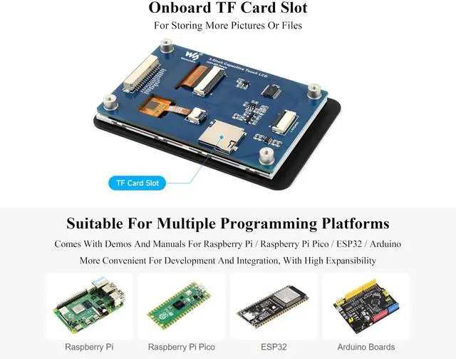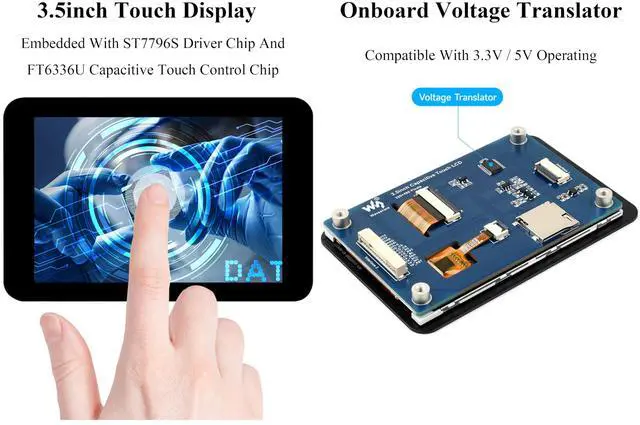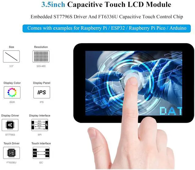 3.5 inch Touch Screen Compatible with Raspberry Pi 5/4B/3B+/3B/Pi Zero/Zero W/Pi Zero 2W/Pico/Pico W/Pico 2/Pico 2W/ ESP32, 320x480 Resolution Capacitive Touch LCD IPS Display, I2C SPI Interface