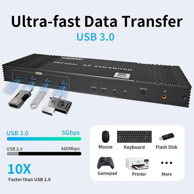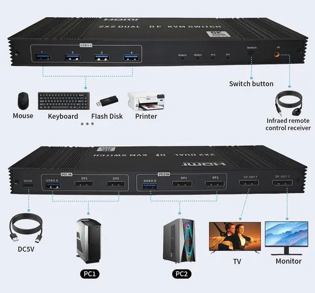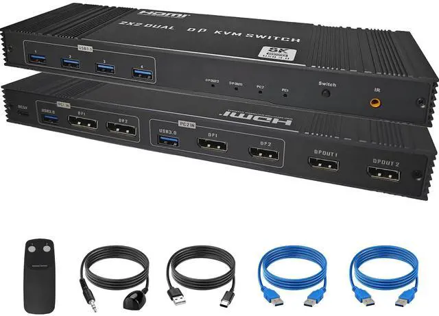 8K HDMI KVM Switch 2 Monitor 2 Computers, Dual HDMI KVM Switcher for 2 PC or Laptops Share 1 Set of Keyboard Mouse anDisplayport KVM Switch 2 Monitors 2 Computers, Dual DP KVM Switcher for 2 PC or Laptops Share 1 Set of Keyboard Mouse and 4 USB 3.0 Devices, 8K@60Hz 4K@120Hz HD Dispaly, Support Copy and Extend Moded 4 USB 3.0 Devices, Display with 8K@60Hz 4K@120Hz, Support Copy and Extend Mode