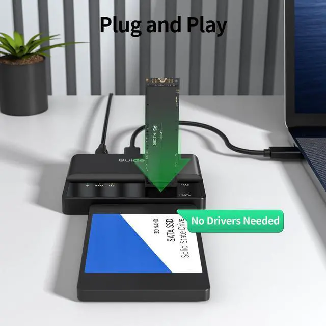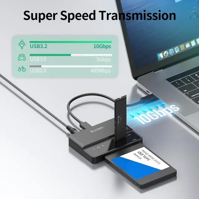 SUIDEK NVMe SSD Enclosure, 10Gbps USB to M. 2 and SATA Adapter Tool Free PCIe NVMe External Hard Drive Reader Compatible with M. 2(M Key&M+B Key) Any Sizes and 2.5" / 3.5" SATA SSD/HDD
