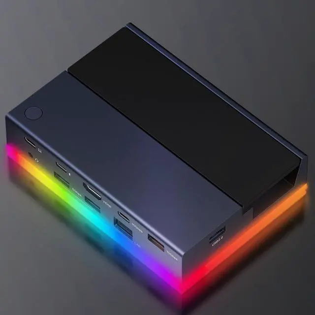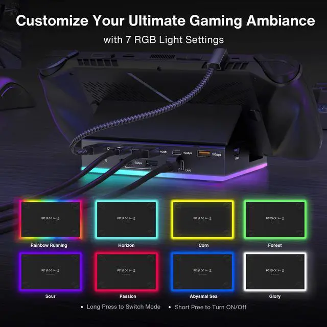 [(New Upgrade 14-in-1 RGB Docking Station)] This Steam Deck OLED Dock boasts an ultimate 12-in-1 connectivity. Featuring a 4K@120Hz HDMI 2.1 port, a 1Gbps Ethernet port, two 10Gbps USB-A 3.2 ports, two 5Gbps USB-A 3.0 ports, and a rapid-charging USB-C port, this dock can perfectly complement your Type-c gaming console. It also includes a 3.5mm audio jack, a TF card slot, an SD card slot. Plus, the two equipped joystick caps can protect your joysticks from external friction and scratches