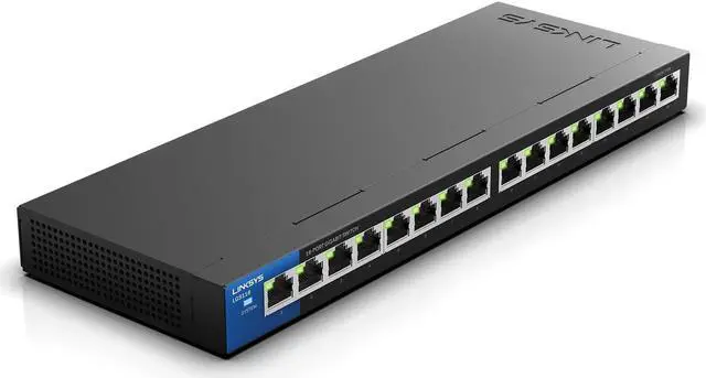 Linksys LGS116P 16 Port Gigabit Unmanaged Network PoE Switch with 8 PoE+ Ports @ 80W - Ideal for Business, Home, Office, IP Surveillance - Ethernet Switch Hub with Metal Housing, Desktop / Wall Mount