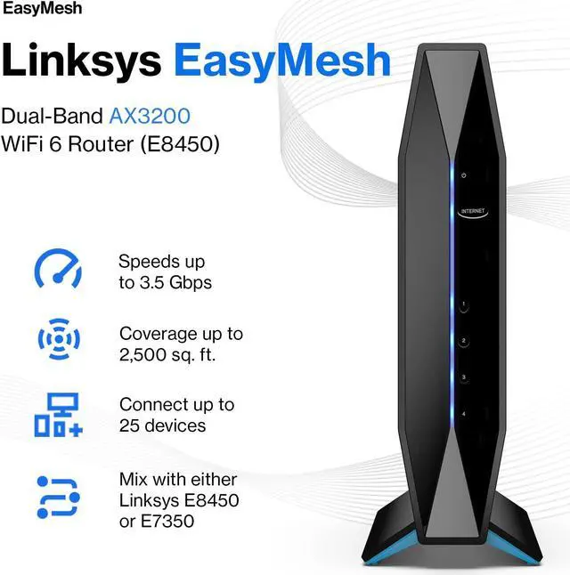 FAST, EXPANDED COVERAGE FOR 25plus DEVICES: Bring capacity to handle more than 25plus mobile, streaming, gaming, and smart home devices to your WiFi network. Coverage up to 2,500 sq. ft. and speeds up to 3.2 Gbps.