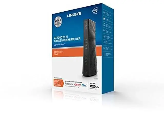 The 2 in 1 AC1900 Wi Fi Cable Modem Router combines aDOCSIS 3.0 24x8 cable modem and an ultra fast AC router intone convenient, high performance device. By combining a cable modem and router, there are fewer devices taking up space on your tabletop and more money in your pocket. Ideal for busy households with multiple connected devices, the Wi Fi cable modem router offers ample bandwidth for streaming, online gaming, and other data heavy activities. With simple setup, you will enjoy more powerful Wi Fi speed within minutes.