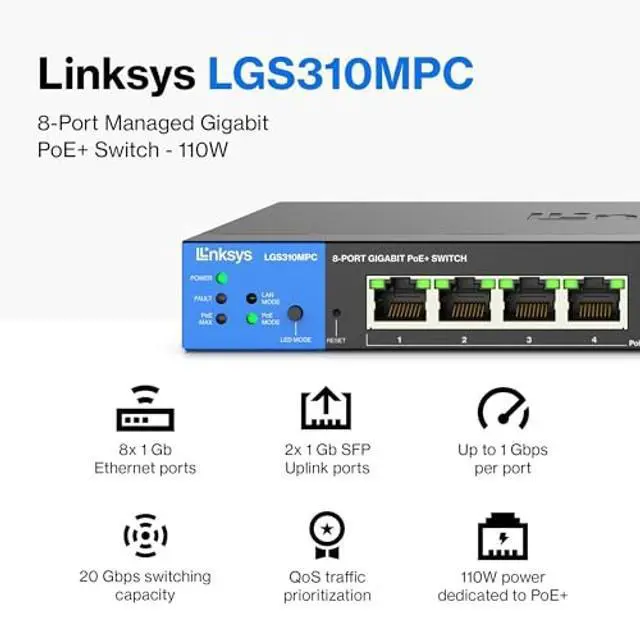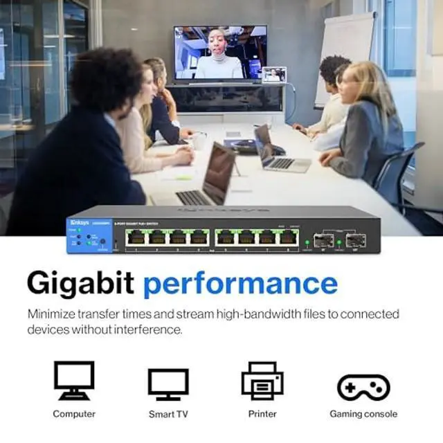 Linksys Gigabit Managed Network SwitchA wireless network may not be the best option for your business for a variety of reasons, including unreliability, slow download speeds, privacy concerns, and your daily data transference. Upgrade the data paths of your local wired network to information superhighways with Gigabit switches at the desktop. Accelerate your performance and productivity when you send large files to network servers, drives, and printers at Gigabit speed. Gigabit PerformanceThe managed switch offers Gigabit speeds to minimize transfer times and greatly enhance the ability to stream high-bandwidth files to connected devices without interference.