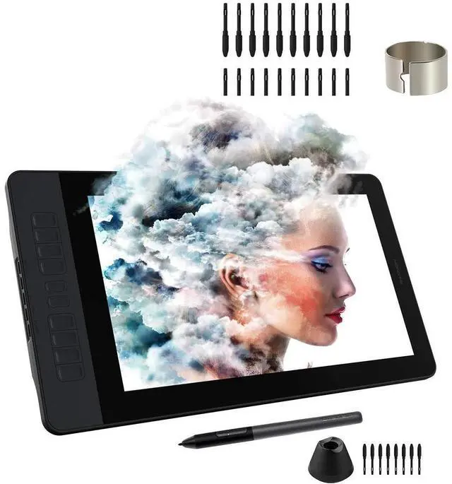 10 SHORTCUT KEYS & 2 CUSTOMIZABLE PEN BUTTONS-- There are 10 shortcut keys on the left side of PD1561 and 2 pen buttons available to be customized according to your own creative habits, like zoom in/out, scroll up and down, and more, to accelerate your work efficiency. 8192 LEVELS BATTERY-FREE PEN & TILT SUPPORT FUNCTION PEN HOLDER & PEN NIBS-8 replacement nibs are put inside the pen holder. 2-FINGER GLOVESADJUSTABLE MONITOR STAND