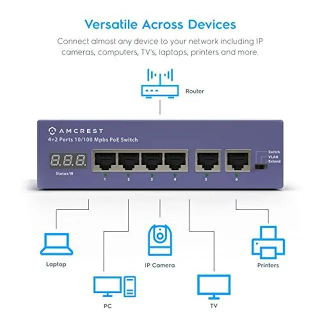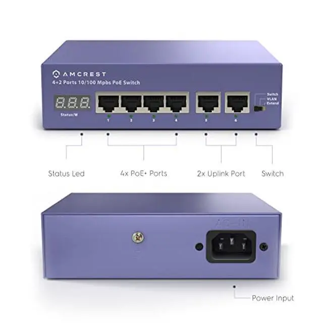 The Amcrest amps5e4p-at-65 is a layer-2 PoE Ethernet switch. It can reach Lightning protection level 3. The device can support up to 2 IEEE 802.3 at or 4 IEEE 802.3 af PDs (the Total PoE power is 65W). in order to acquire smooth monitoring, its recommended to connect Max 4 IP cameras at a bit rate of less.