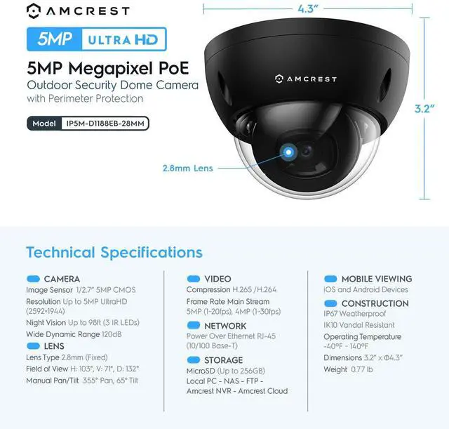 AMCREST MODEL: IP5M-D1188EB-28MM