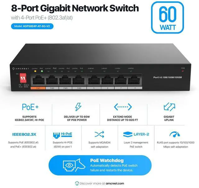 AMCREST MODEL: AGPS8E4P-AT-60-V2GIGABIT/POE