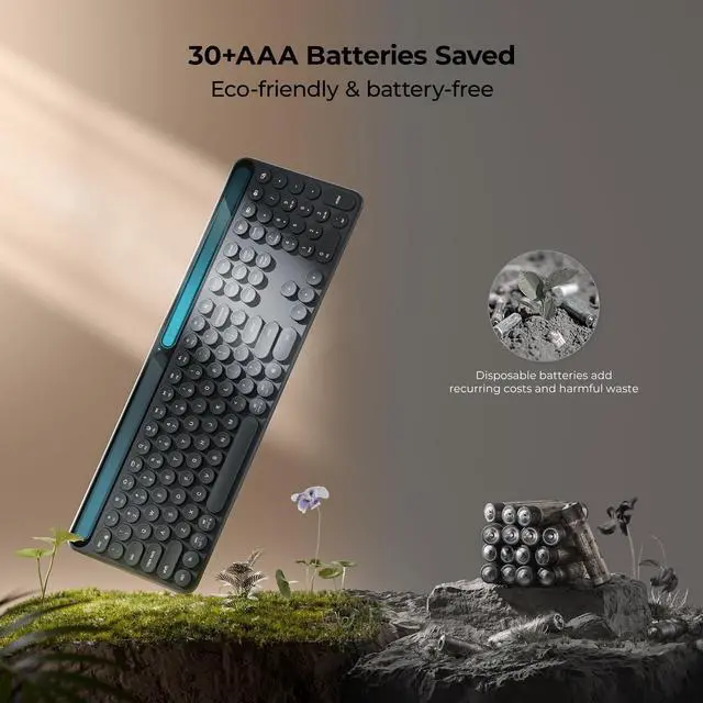 Infinite Solar Charging: Harness sunlight or indoor light to power your keyboardno batteries required! The built-in solar panel ensures endless energy for 24/7 productivity.