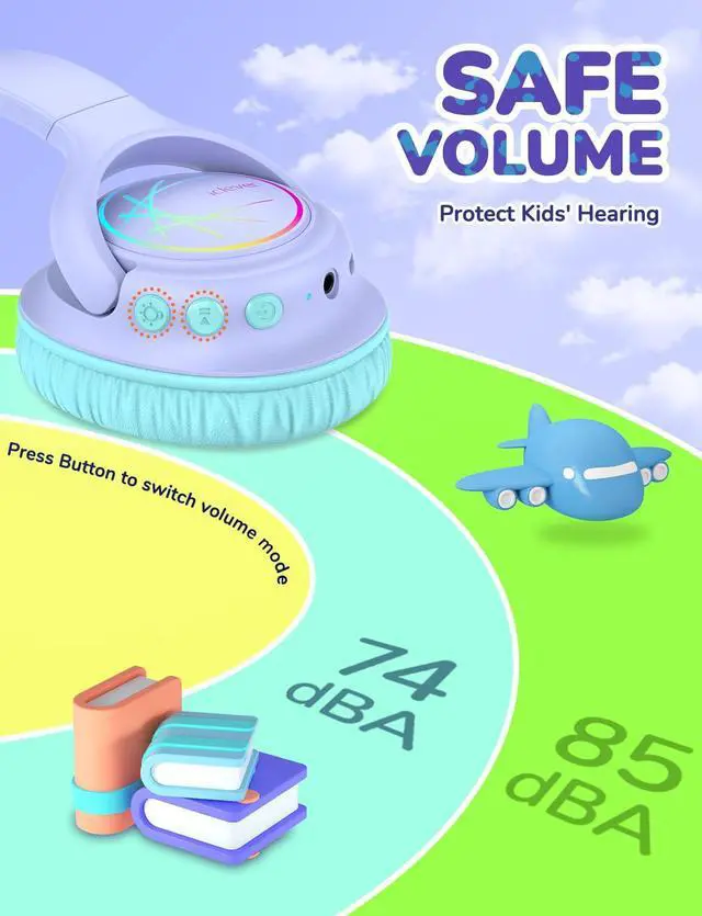 [Safe Volume & Materials]: Two volume limits (74/85dBA) make safe listening and fantastic audio possible (85dBA for wired mode)! With sustainable BPA-free materials that comply with Rohs2.0 and CPC standards, this FCC-certified kids Bluetooth headphone is kid-friendly indeed!