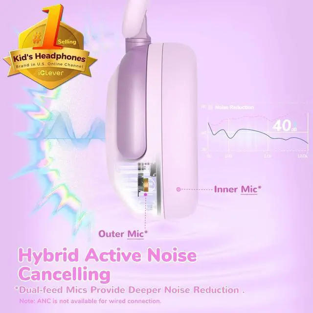 ^^ [Safer Listening]: Employing the iClever Sound Refiner & 80dBA volume limit technology, these Noise Cancelling Headphones for Kids effectively reduce the volume in the most vulnerable hearing frequency range while delivers clearer and more balanced sound quality.