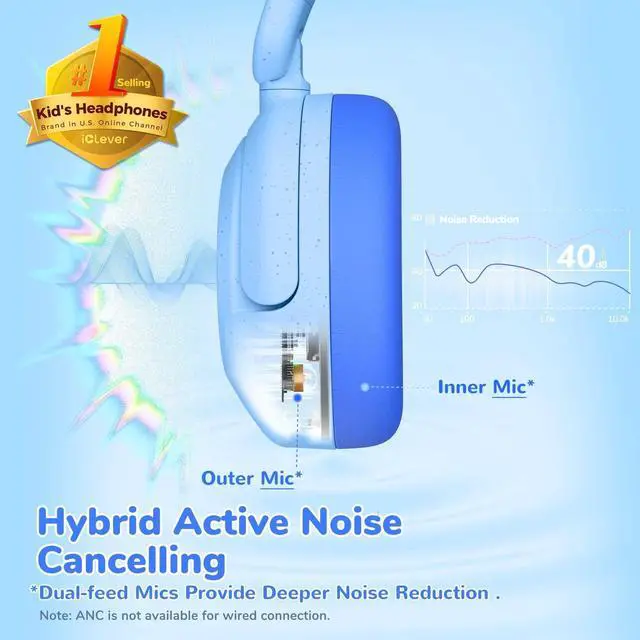 ^^ [Safer Listening]: Employing the iClever Sound Refiner & 80dBA volume limit technology, these Noise Cancelling Headphones for Kids effectively reduce the volume in the most vulnerable hearing frequency range while delivers clearer and more balanced sound quality.