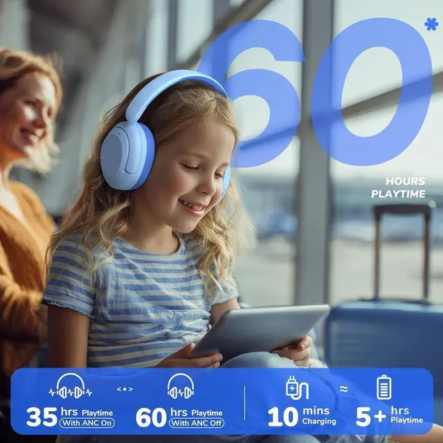^^ [Long-Lasting Battery Life]: These Bluetooth 5.4 Kids Bluetooth Headphones offer a more stable connection and less power consumption, providing non-stop fun (60 hours with ANC off; 35 hours with ANC on). Better yet, a quick 10-minute Type C fast charge provides 5 hours of use and the included 3.5 mm audio cable means no more battery anxiety.