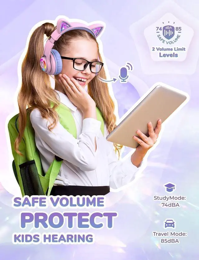 Cute & Stylish: It's the evolution of kids headphones--great sound quality and a cute, fun, kid-friendly design. Your little ones will love the iClever cat ear headphones, whose RGB LED lights are controlled by one independent button. When pressed in Bluetooth mode, it will turn off the lights to extend use time.
