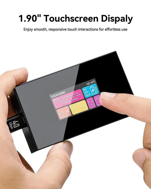 What Will You Get: Dockcase Touch Screen Smart USB-C Hub (8-in-1), 1 hub instruction manual, 1 USB-C to C full-featured data cable ( 0.98 ft), our worry-free 12-month warranty, and 24-hour friendly customer service