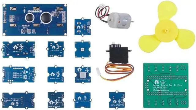 [(User-Friendly)] Grove starter kit is designed for Raspberry Pi Pico. No wiring, no welding, plug & play experience. With the help of the Grove Pico shield, you can simply connect all these modules to the Pico by plugging and unplugging.