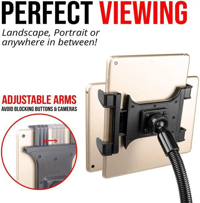 DEVICE COMPATIBILITY - The tablet cradle will accommodate any tablet with a screen size between 7" and 18.4", or a tablet with a width between 6.25" and 11.5". To name a few, this includes the Apple iPad Pro 12.9, iPad Air 2 and iPad Air, iPad 4, 3, and 2, Galaxy Note 10.1, Galaxy Note Pro 12.2, Galaxy Tab 4 10.1, Galaxy Tab Pro 10.1 and 12.2, Galaxy Tab S 10.5, Google Pixel C, Nexus 10, and Nexus 9, LG G Pad 10.1, Sony Xperia Tablet Z4 and Tablet Za| oh yeah, it also holds the Microsoft Surface Pro and Nintendo Switch! The deep grips will also accommodate your tablet regardless the size of your case.