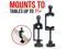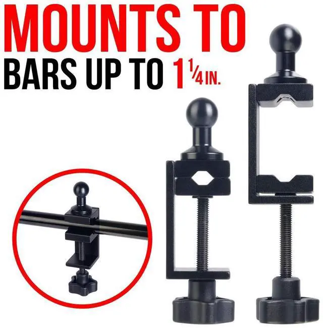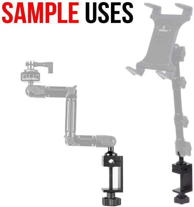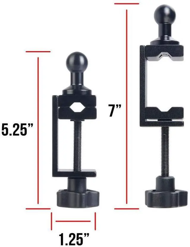 VERSATILE HEAVY DUTY CLAMP This all aluminum clamp is notched to accommodate either a square or round bar, pole or rod up to 1.25", in addition to being able to mount to a table, desk or any flat surface under 1 5/8" thick.