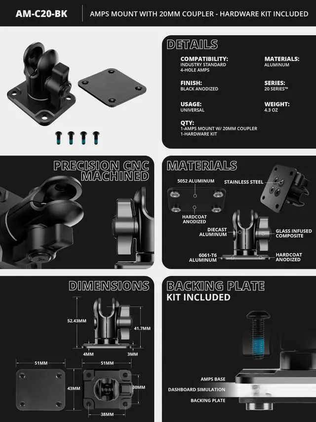 Our AMPS base with short reach socket provides compatibility with an array of 20mm-compatible holders, ensuring seamless attachment for tablets, smartphones, and other devices. Its intuitive design simplifies the mounting process, allowing users to securely connect their preferred devices without issue.