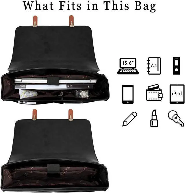 ECOSUSI Women Briefcase PU Leather Laptop Bag College Satchel fit 15.6" Laptop