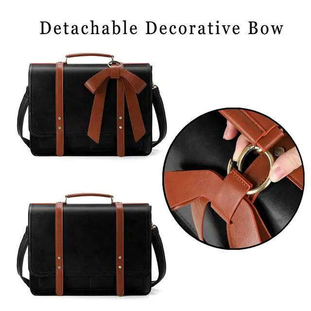 ORIGINAL DESIGN - A detachable bow adds more feminine touch to this professional briefcase. Suitable for college, work, business trip, traveling to hold a laptop, wallet, phone, folders, notebooks, etc. ^^ VERSATILE- Designed with top handle and a removable and adjustable shoulder strap(drop: 29-48''), this laptop bag can be used as a briefcase, or a shoulder bag when heavy load. ^^