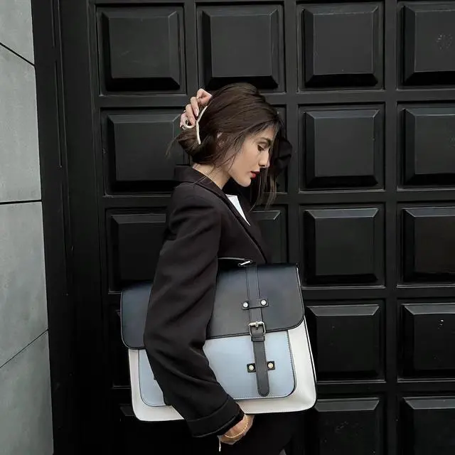 Designer Briefcase for Women- Made of vegan leather, environmentally friendly and water-resistant. Vintage brass hardware is durable and long-lasting. Simple and stylish design, with gentle and elegant colors this briefcase backpack is an ideal gift for Christmas, New Year, Valentine's Day and birthday.