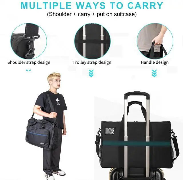 Professional designedCreated by professional designers, the inner is soft velvet lining, interior padding and foam(thick 25/64") block cradle for perfect protect your screens from scratches and bumps all around. A transparent label pocket on the back can help you distinguish bag quickly