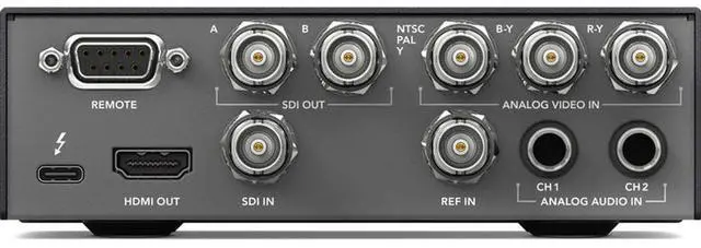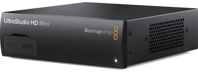 The Blackmagic UltraStudio HD Mini features Thunderbolt 3 connection so you get incredible 40 Gb/s performance for capture and playback of fully uncompressed video in SD and HD video up to 1080p at 60 fps with up to 16 channels of embedded audio. UltraStudio HD Mini features professional broadcast quality connections that include 3G-SDI, analog YUV and composite NTSC/PAL video inputs, along with a reference input. There are also two audio connections for analog audio input that work with balanced and HiFi sources. In addition, UltraStudio HD Mini can remote control professional broadcast decks using the built in RS-422 connection.