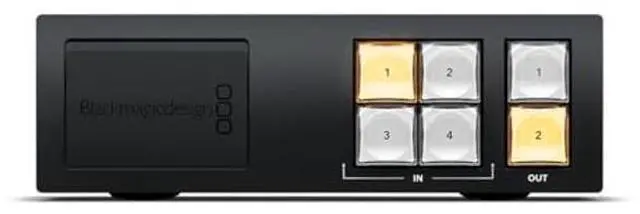 Blackmagic Videohub Mini 4x2 12G is a compact zero latency video router that supports any combination of SD, HD and Ultra HD on the router at the same time. It has 4 12G-SDI inputs and 2 12G-SDI outputs in a tiny 1/3 rack width size. The front panel control panel lets you quickly route a video connection and even includes an emergency 12G-SDI connection for patching in external gear and USB-C webcam video out. It also features SDI re-clocking, external Ethernet control and supports all SDI video standards up to 2160p60. Blackmagic Videohub MiniThe Blackmagic Videohub Mini routers are the perfect solution for adding extra inputs to your SDI equipment.