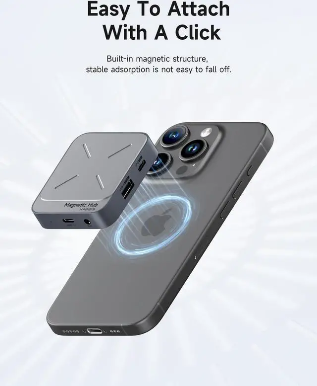 Hagibis Magnetic USB C Hub with Magsafe for iPhone 16 15 Pro Max, 7 in 1 Type-C Docking Station 4K@60Hz HDMI SD3.0 TF3.0 Card Solt 100W PD 10Gbps USB-C AUX for MacBook Pro Air, iPad Pro (TC100)