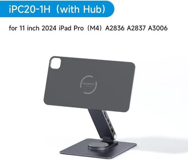Hagibis Magnetic iPad Stand with USB C Docking Station, 360° Rotatable Adjustable Tablet Holder with 4K@60Hz HDMI, 100W PD, USB 3.0, AUX and SD/Micro SD Hub for iPad Pro M4 2024 (iPC20-1H)