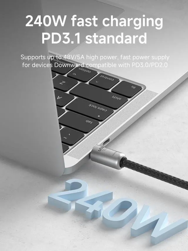 Fast Charging: Built-in E-marker chip, PD 3.1 standard supports 240W fast charging, while it is backward compatible with PD 3.0 and 2.0 protocols, Supports high power output of up to 48V5A. And also compatible with 140/100/60W power devices. Charge USB C devices from phones to laptops ^^ 8K