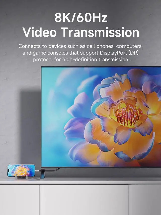 Video Output: The usb c display cable support UHD resolution. Connect your laptop to an external monitor or extend your screen up to 8K@60Hz or two 4K@60Hz displays on the same time. Dual-monitor display requires 2 cables.