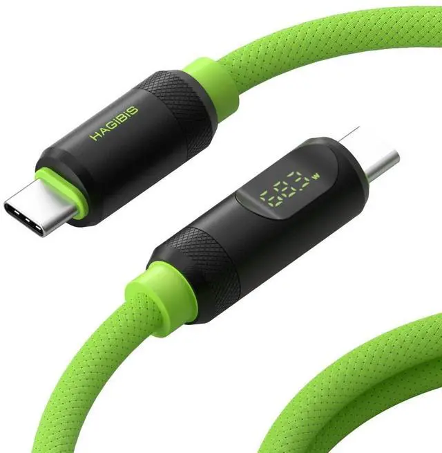 Hagibis USB 4 Cable, LED Display USB C 240W Fast Charging Cable with 8K@60Hz 40Gbps Data Transfer Thunderbolt 4/3 Video Cord for iPhone 17 16 15 Pro Max, iPad, MacBook Pro Air (Braided, Green, 3.3FT)