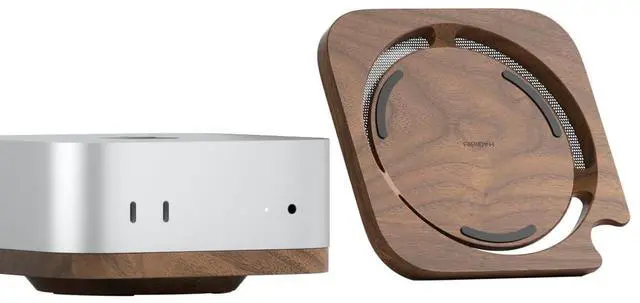 M4: Hagibis uses Mac mini M4 real machines as moulds for precise cutting, makes one side of this black walnut stand fit perfectly with the size of Mac mini M4 and Mac mini M4 Pro ^^