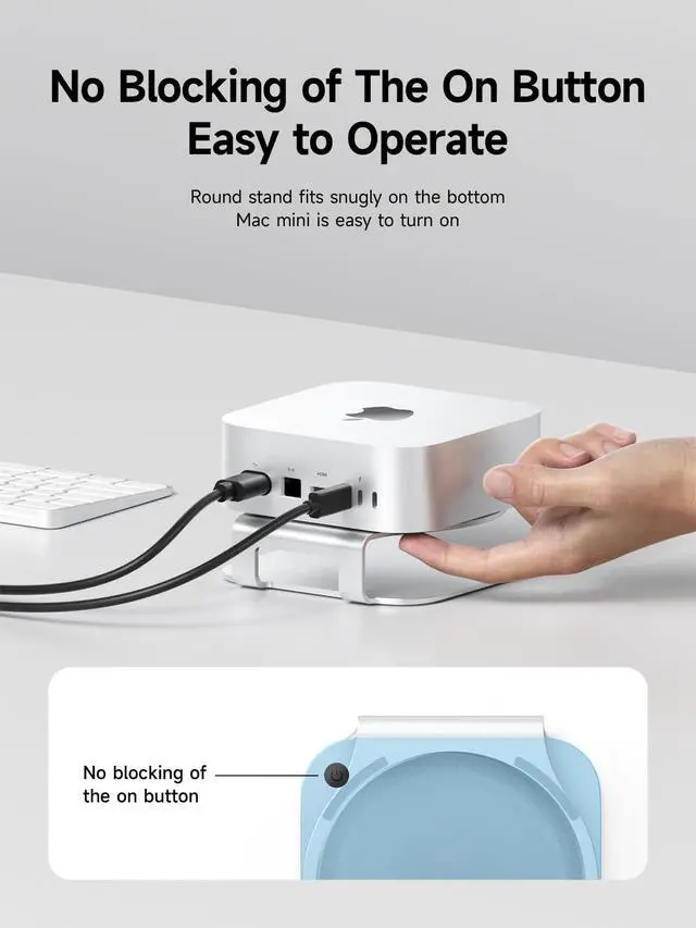Convenient Operation: Hagibis Mac mini M4 holder is no blocking the power on button, round stand fits snugly on the bottom make your Mac mini easy to power on ^^
