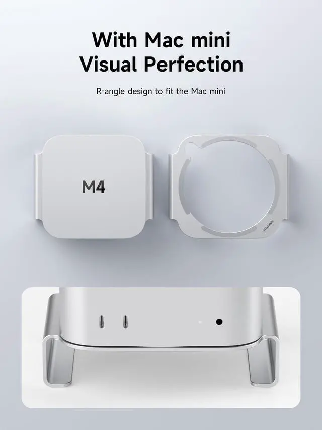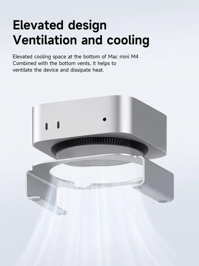 Premium Materials: Crafted from high-quality aluminum alloy, the stand undergoes a meticulous ceramic sandblasting and anodization process, providing a surface finish that matches the Mac Mini M4 aesthetic ^^