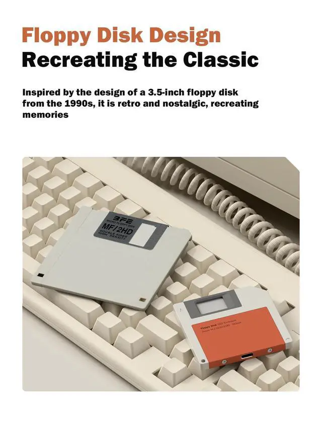 Classic: Hagibis M. 2 NVMe 2230 2242 SSD Enclosure is inspired by the design of a 3.5 -inch floppy disk from the 1990s, it is retro and nostalgic, recreating memories ^^ 10Gbps
