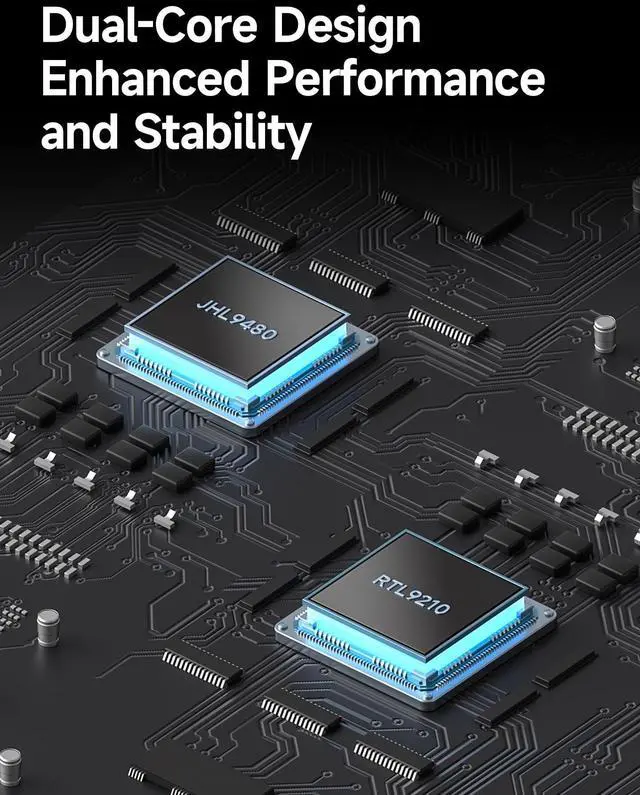 Dual-Core Design: Next-Generation Thunderbolt master controller chips JHL9480 + RTL9210, Dual-Controller solution makes high performance, low power consumption and strong compatibility. It dramatically improves work efficiency, offers faster response times, and ensures high-speed operation with peace of mind ^^ 8TB Large Capacity