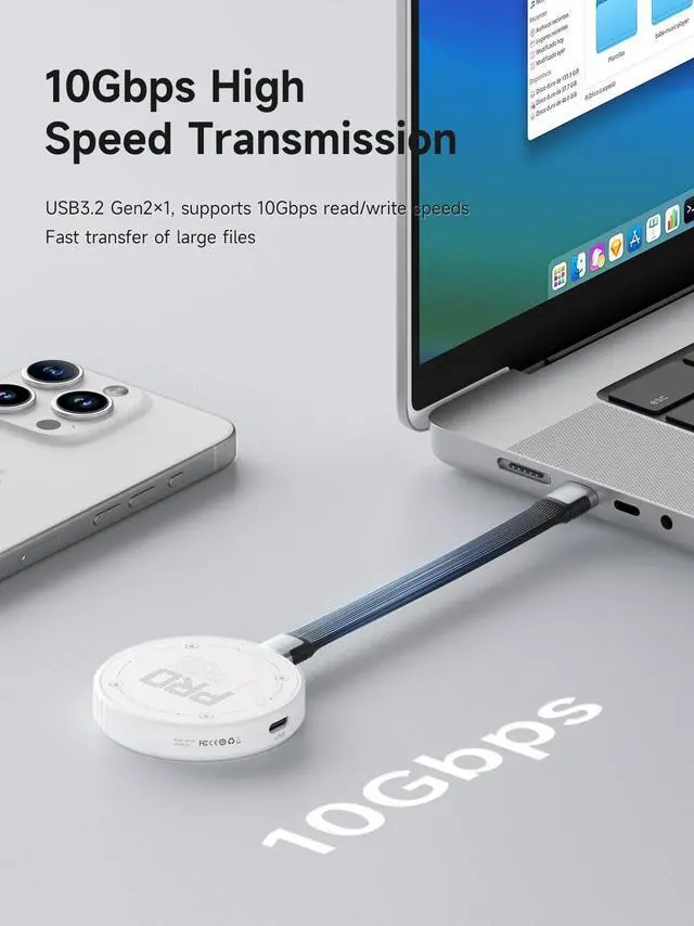 Wide Compatibility: Equipped with 2 10Gbps USB 3.2 Gen2 Type-C lanyard data cable, compact and portable. Widely compatible with devices with Type-C interface such as iPhone 17 16 15 Pro / 17 16 15 Pro Max / iPhone 17 Air, iPad Pro, MacBook Pro/Air, Android, laptop