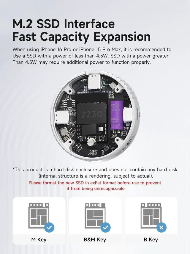 and tablet ^^ *Note: When connecting a new M. 2 SSD to this product, please first change the format of the M. 2 SSD to exFat format